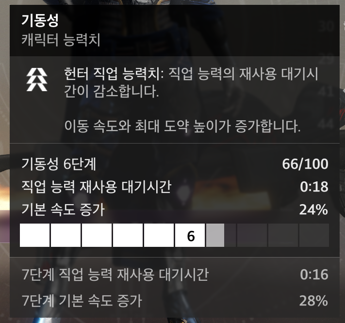 헌터한정으로 기동성을 올리면 직업 능력 재사용 대기 시간이 줄어든다.